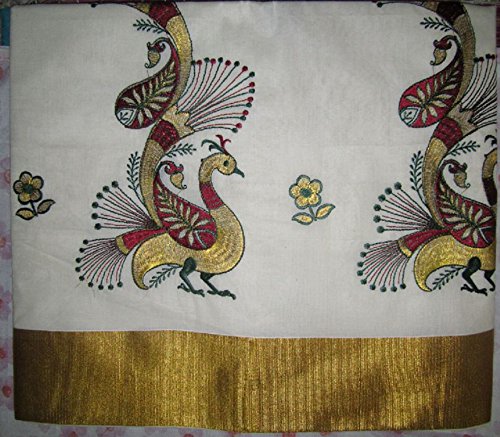 Designer Kerala Saree With Peacock Embroidery Women S Fashion