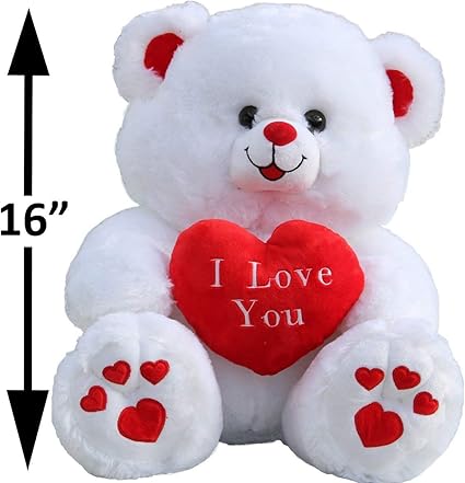 Amazon Com Large I Love You White And Red Teddy Bear 16 Tall